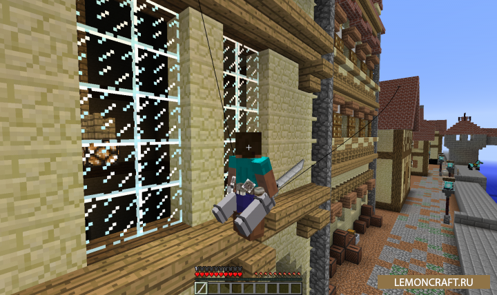 Мод 3D Maneuver Gear добавляет в игру специальные тросы очень похожие на те что были в манги Атака на титанов. С их помощью вы сможете освоить новый вид передвижения. Проще говоря у вас будет два троса, один в правой руке, другой в левой. Выстреливая ими поочередно вы сможете цепляться за верхушки строений и передвигать себя.