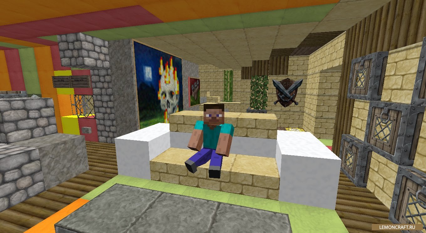 Мод Sit позволяет вашему персонажу сидеть на лестницах и полу блоках. Для того, что бы сесть достаточно навести курсор на ту же лестницу и нажать ПКМ - все игрок сидит. Данный мод поддерживает лестницы и плиты из других модов и позволяет вашей фантазии немного поиграть.
